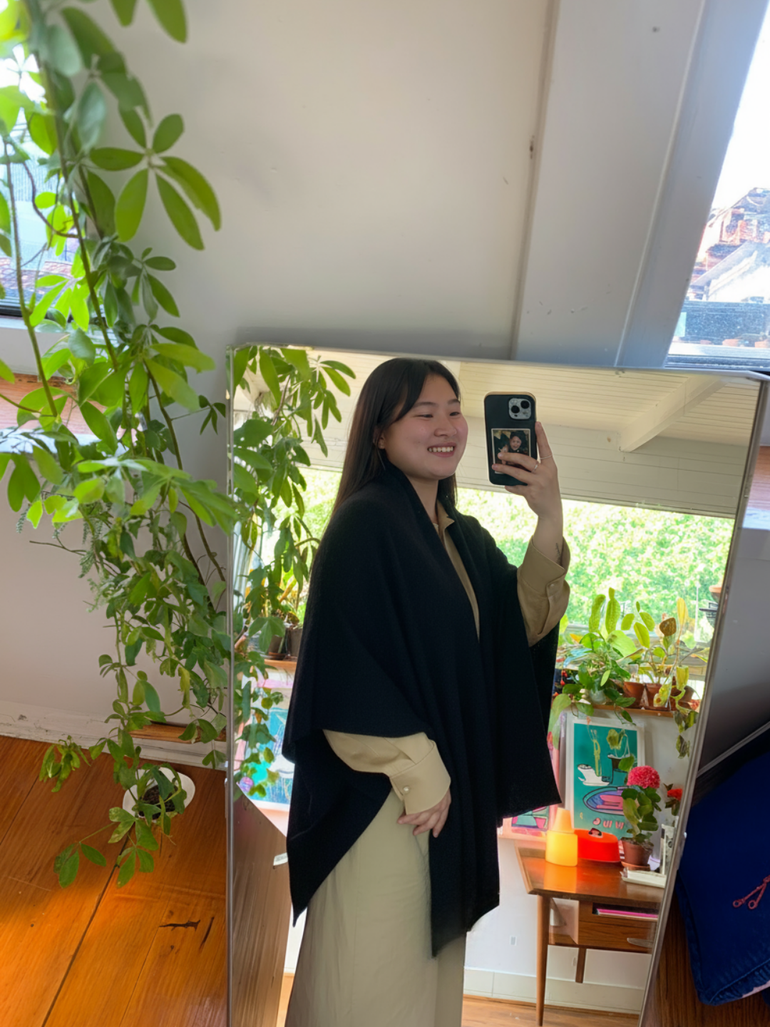 I was amazed by how lightweight yet warm this shawl feels. It drapes beautifully without feeling bulky, and the Merino wool is unbelievably soft against the skin. I’ve worn it on flights and for dinners out — it always looks effortlessly chic.