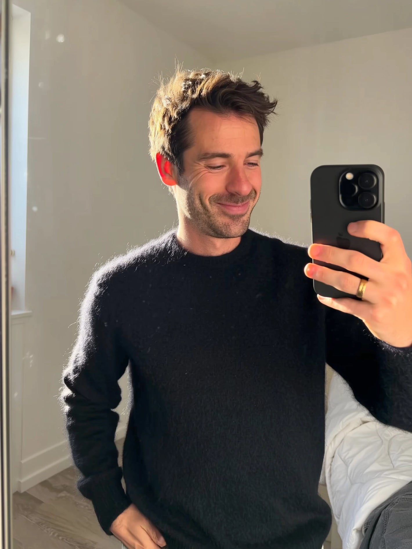 Crafted from 100% brushed cashmere, this crewneck offers a feather-light feel with rich texture and warmth you’ll notice instantly.