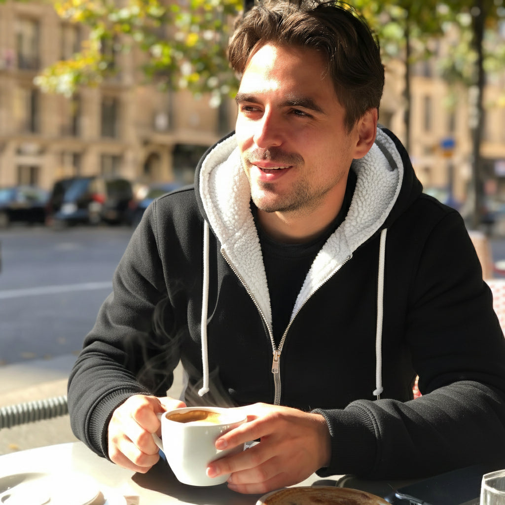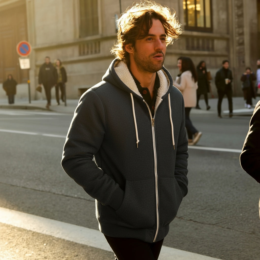 The brushed fleece interior and cozy sherpa lining lock in warmth, making it your go-to hoodie for brisk mornings, outdoor errands, or laid-back weekends.