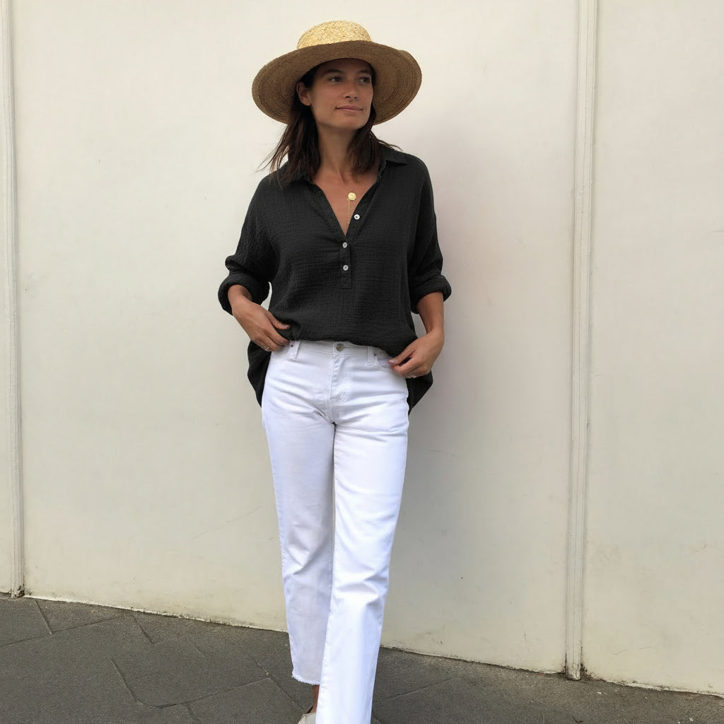 Perfect for layering or wearing on its own, this piece transitions seamlessly from workdays to weekends with timeless appeal.
