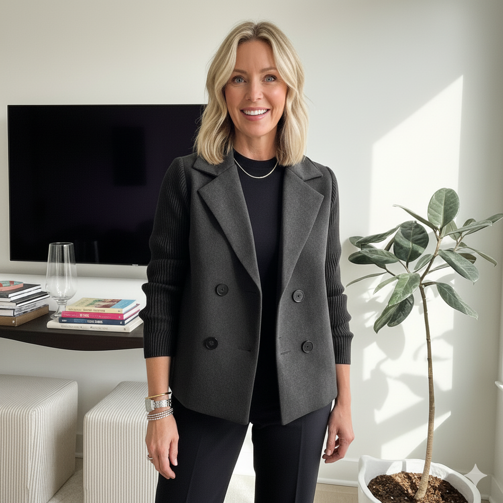 Introducing the Sasha Casual Blazer Coat, where tailored elegance meets the relaxed softness of a knit. Crafted in an ultra-soft ribbed fabric, it drapes like a blazer but feels like your favourite sweater.