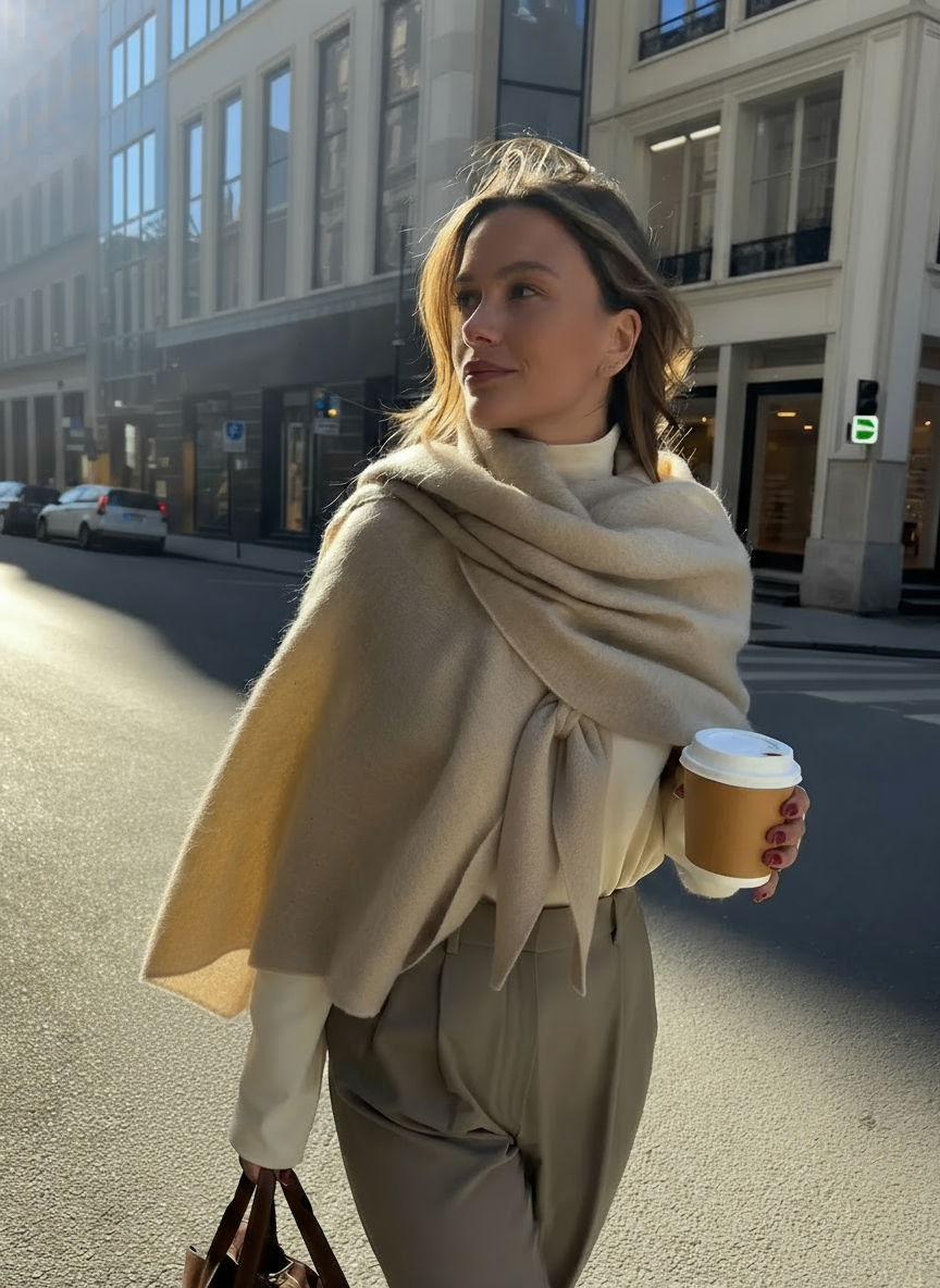 Introducing The Fleece Shawl, crafted to wrap you in gentle warmth without the bulk. Made from a soft, premium fleece-blend fabric, it drapes fluidly around your shoulders and stays light enough for indoor or outdoor wear.