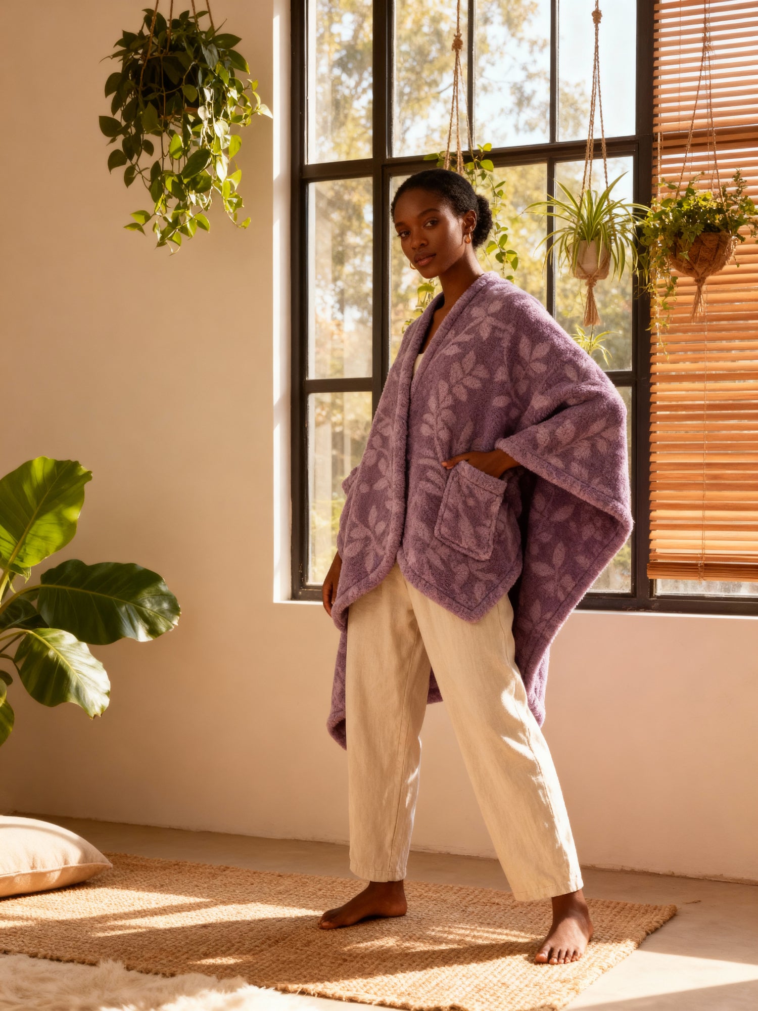 Designed for relaxation and versatility, this wearable throw brings warmth wherever life takes you.